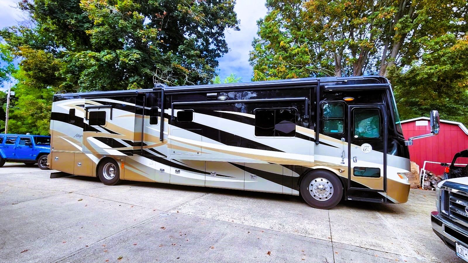 āØ2013 TIFFIN ALLEGRO BUS 40QBP FEATURES INCLUDE:  ALL ELECTRIC COACH ā no propane to worry about!  450hp Cummins diesel engine with oversized side radiator, 6 speed Allison transmission with 1250lbs of torque, Powerglide Chassis 450 HP with 295/22.5 Tires, Full Body Paint, Glazed Cherry solid hardwood cabinets, doors, and trim, In Motion Low Profile Satellite Dish, Pre-Wire for Winegard Travel Satellite, Basement Freezer, Stainless Residential Refrigerator (with 6 Batteries), (3) Solar Panel (125 Watt), (2) Slide-Out Storage Trays, Safe--Located in closet, Power Awning with Extended Drop Down Shade, Dishwasher-Drawer Type, Stacked Washer/Dryer, Induction Cooktop, Convection Microwave, Dinette/Computer Workstation, PS-Ultra Leather Air Coil Hide-A-Bed Sofa Sleeper, Ultra Leather DE Sofa, Air Comfort King Mattress, In Dash Navigational System, Fireplace, Onan 10kw diesel generator with auto gen start, in-dash GPS navigation, outside LED TV, pass through basement storage, 10,000lb hitch, (2) A/C'S w/ heat pumps, Aqua Hot 450D Hydronic Heating System with Engine Preheat for radiant heat and endless hot water, 2800w Pure Sine wave inverter, dual pane windows, 3 way cameras, Auto leveling system, keyless entry, leather power front swivel seats, huge shower, High polished aluminum wheels, central vacuum, 50AMP, 150 gal Fuel tank with dual fuel fill, heated power mirrors, heated tanks, 1 piece molded fiberglass roof and much more!!